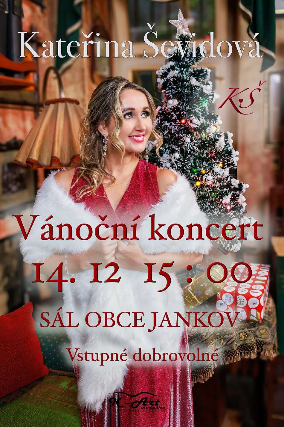 Vánoční koncert Kateřiny Ševidové 14. 12. 2025 od 15 hodin v sále.